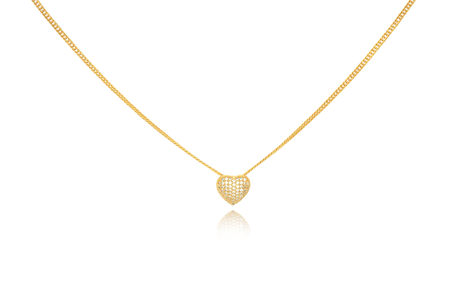 GARGANTILHA BANHADA EM OURO, 2,40mm ESPESSURA, 40cm DE COMPRIMENTO E CORAÇÃO 14mm LARGURA E 12mm ALTURA