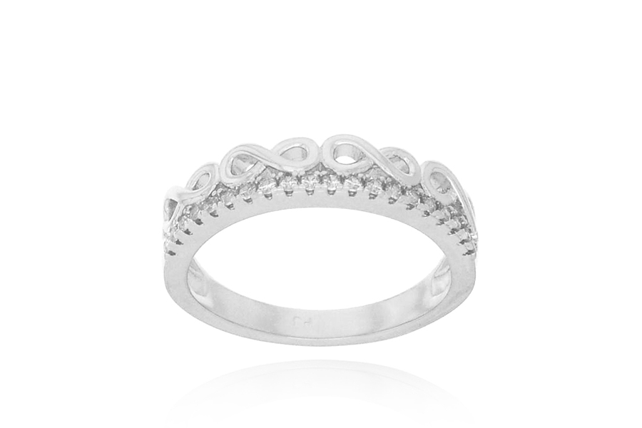 ANEL EM PRATA, INFINITO MEIO CRAVEJADO, COM 2 FIOS LISOS TRANÇADOS, 6,50mm LARGURA