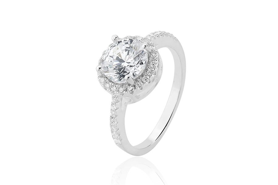 ANEL BANHADO EM RÓDIO BRANCO, SOLITÁRIO 9mm, LINHA TRADICIONAL