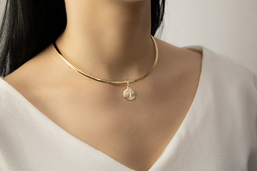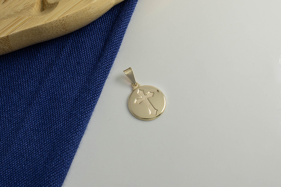 PINGENTE BANHADO EM OURO, 15mm DE DIÂMETRO, CRUZ