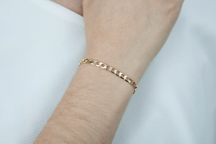 PULSEIRA BANHADA EM OURO, CORRENTE ELO CARTIER 4,30x2,80mm, 16cm COMPRIMENTO, EXTENSOR 5cm COMPRIMENTO E PESO 3,10g