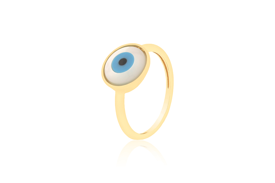 ANEL BANHADO EM OURO, GOTA MADREPÉROLA 28x19mm