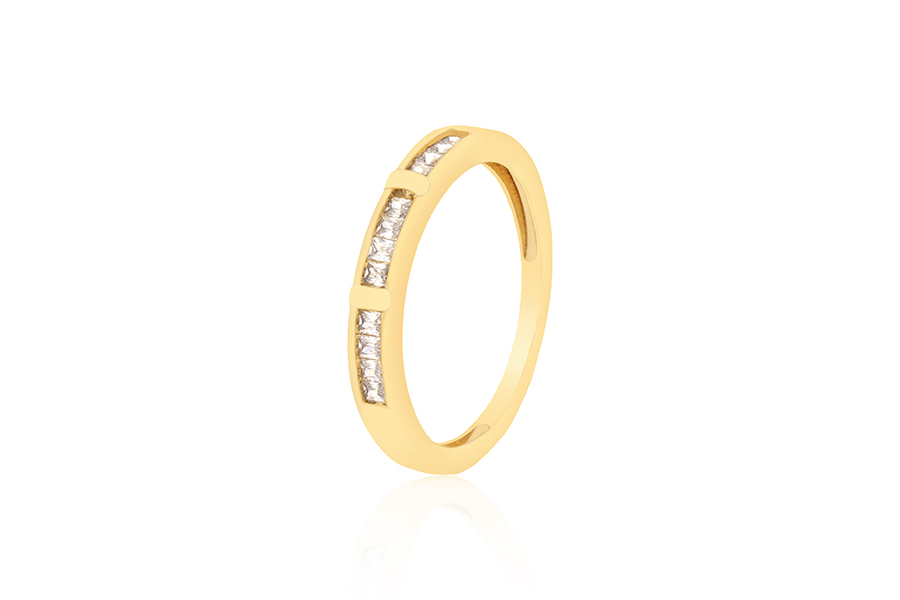 ANEL BANHADO EM OURO, ALIANÇA COM 11 ZIRCÔNIAS 4,50mm