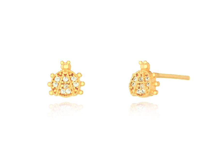 BRINCO BANHADO EM OURO, INFANTIL, PONTO DE LUZ 4,50mm DIÂMETRO, COM TARRAXA BABY