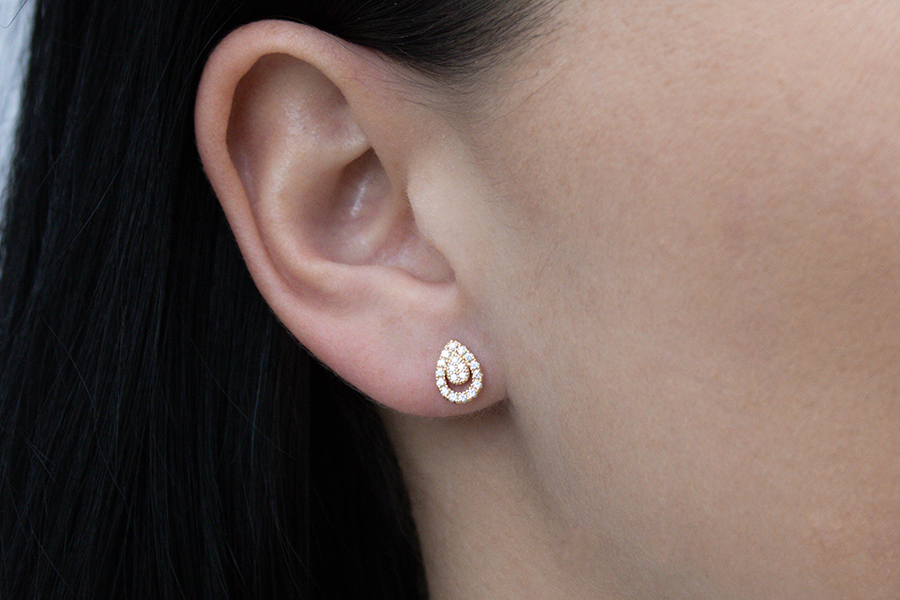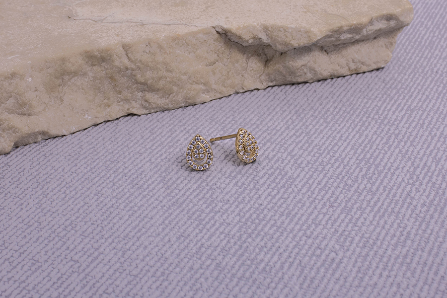 BRINCO EM PRATA, GOTA VAZADA E CRAVEJADA 11mm ALTURA