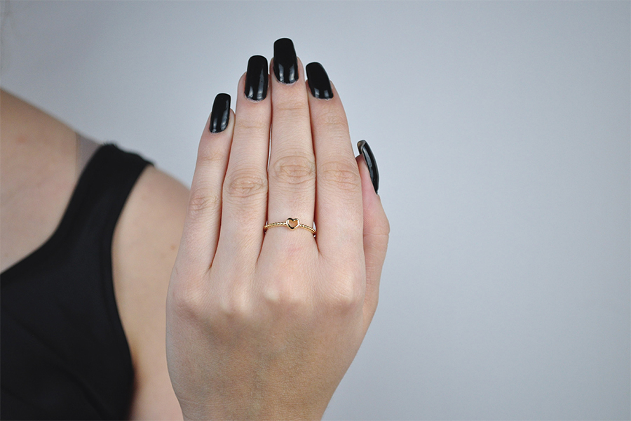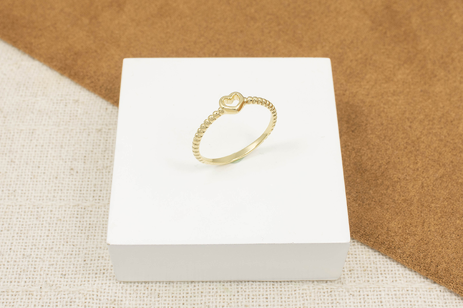 ANEL BANHADO EM OURO, CORAÇÃO 4,50mm ALTURA