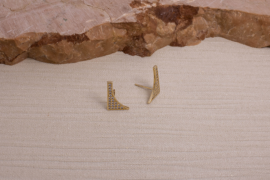 BRINCO BANHADO EM OURO, TRIÂNGULO 36mm ALTURA, 16,50mm LARGURA E ZIRCÔNIA 7mm DIÂMETRO, QUALQUER COR