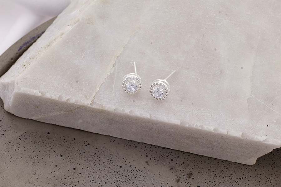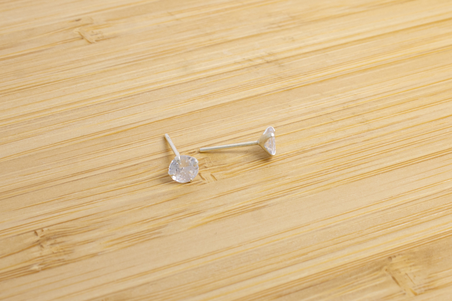 BRINCO BANHADO EM RÓDIO BRANCO, PONTO DE LUZ 3mm, CRAVAÇÃO INGLESA