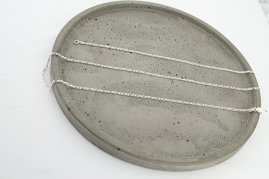 CORRENTE EM PRATA, ELO CANUTILHO E ESFERA TRANÇADO E DIAMANTADO, 3,20mm LARGURA E 2,20mm ESPESSURA, 45cm COMPRIMENTO
