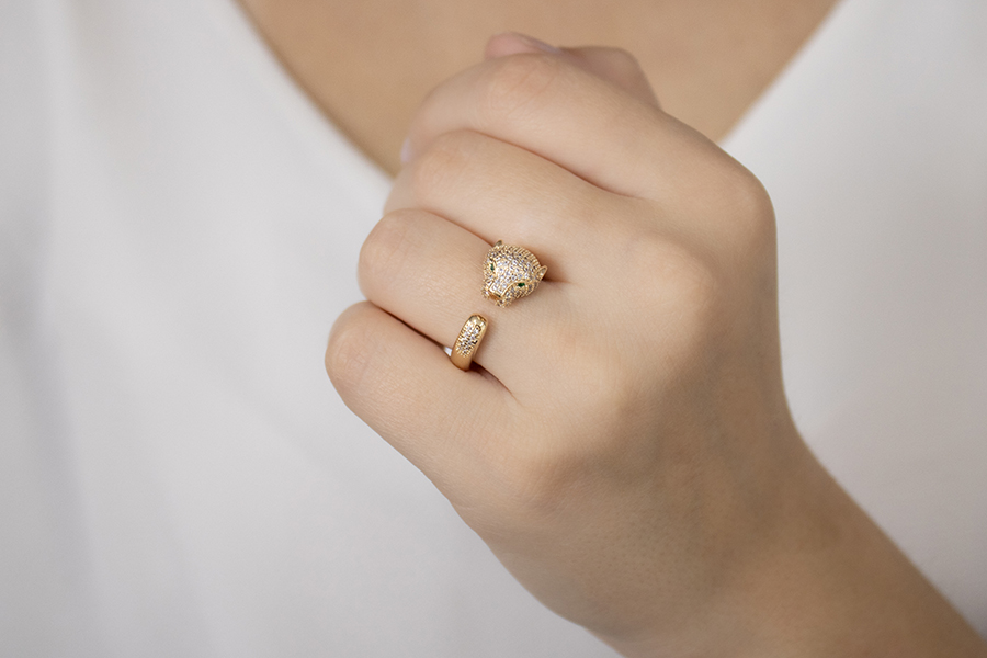 ANEL BANHADO EM OURO, COM ZIRCÔNIAS