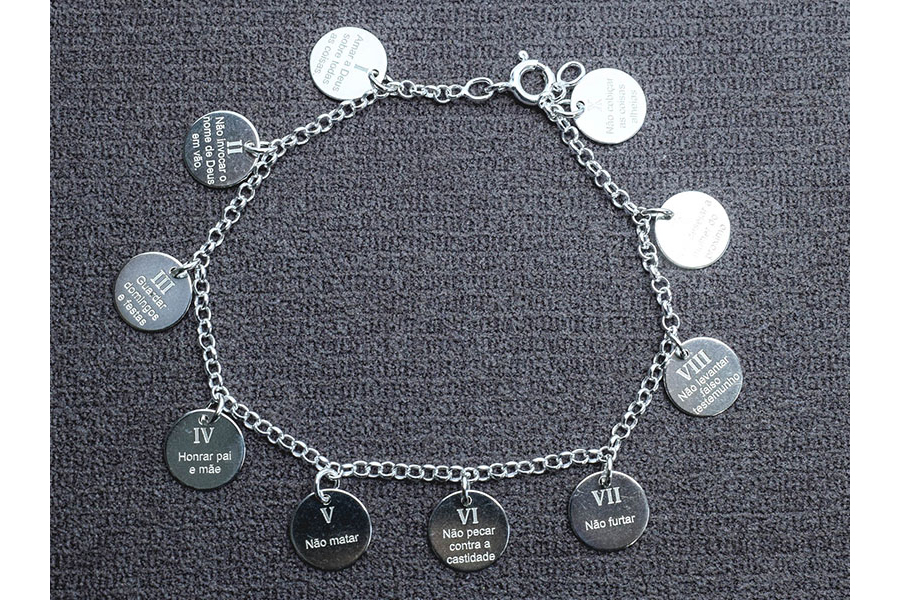 PULSEIRA BANHADA EM OURO, ELO PORTUGUÊS 2,50mm, 16cm COMPRIMENTO, PONTO DE LUZ 4,50mm E PINGENTE FÉ 11mm DIÂMETRO