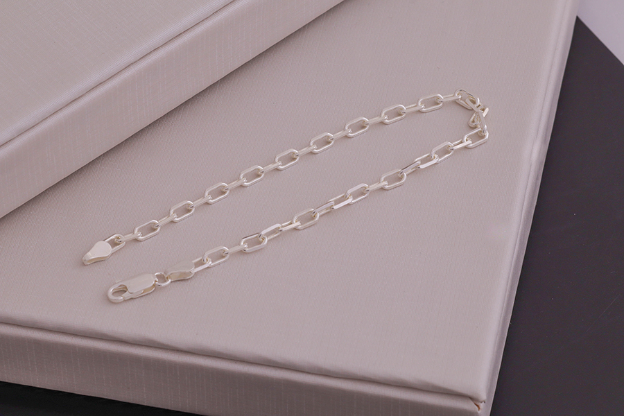 PULSEIRA BANHADA EM PRATA LEVE, ELO OVAL 1,20mm LARGURA, 16cm COMPRIMENTO, EXTENSOR 5cm COMPRIMENTO E MENINO 9mm DIÂMETRO