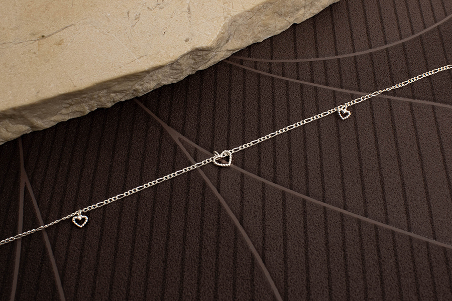 PULSEIRA BANHADA EM OURO, ELO PORTUGUÊS 3mm DIÂMETRO, CORAÇÃO 7mm LARGURA E GATO 16mm ALTURA