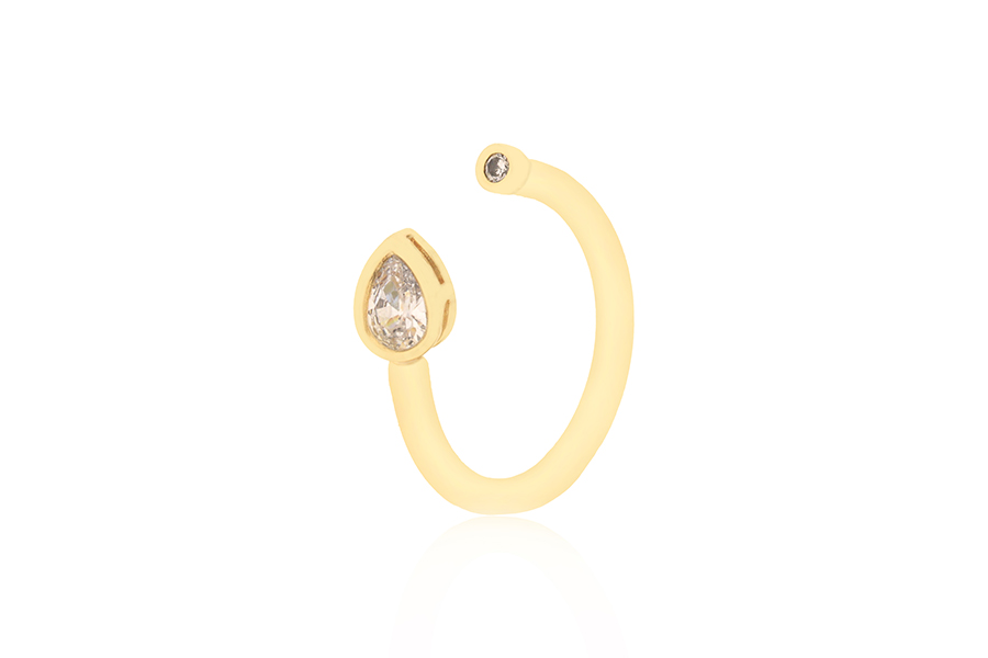 ANEL BANHADO EM OURO, CRISTAL, GOTA 18x13mm