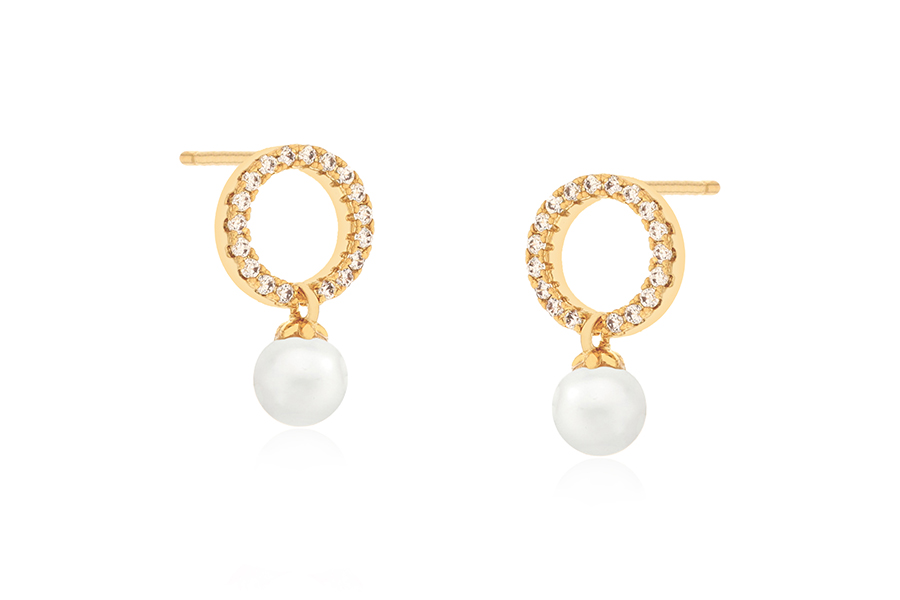 BRINCO BANHADO EM OURO, PÉROLA SHELL 8mm, LINHA TRADICIONAL