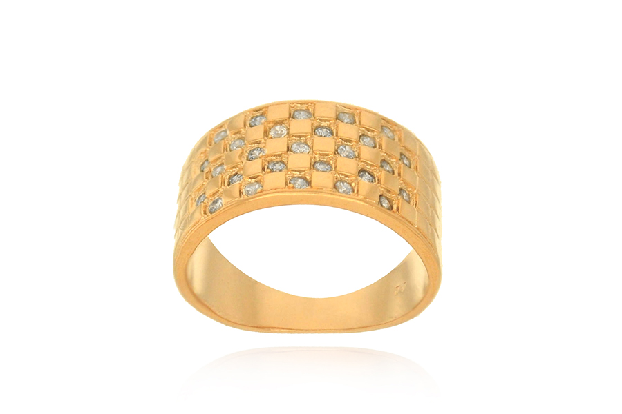 ANEL BANHADO EM OURO, AMPULHETA CRAVEJADA 17mm LARGURA, LATERAIS VAZADAS