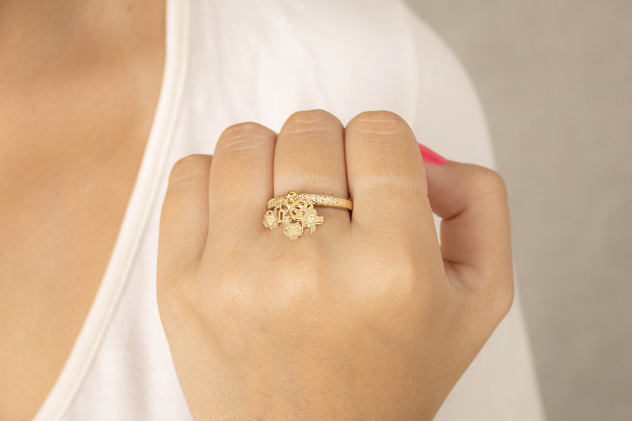 ANEL BANHADO EM OURO, 3 CORAÇÕES, 16mm LARGURA