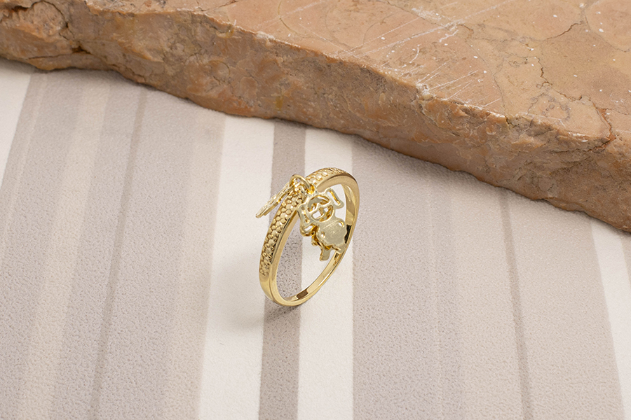 ANEL BANHADO EM OURO, CORAÇÃO 5,70mm ALTURA