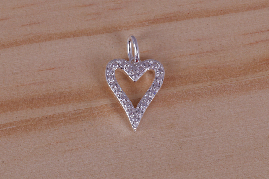 PINGENTE EM PRATA, CORAÇÃO VAZADO E CRAVEJADO 16mm ALTURA