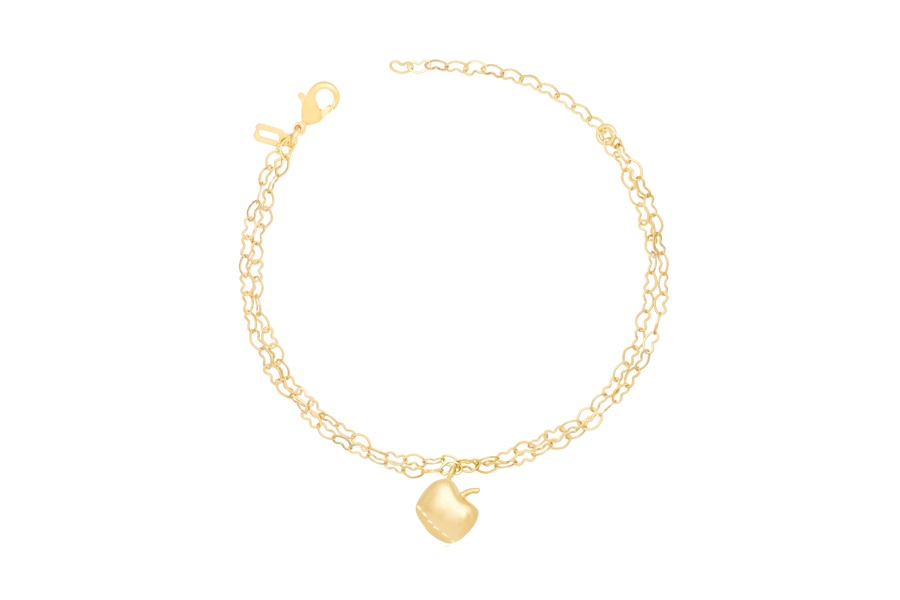 PULSEIRA BANHADA EM OURO, CRISTAL, ELO PORTUGUÊS 7mm DIÂMETRO, 1,90mm ESPESSURA E PINGENTE BONECOS 20mm DIÂMETRO