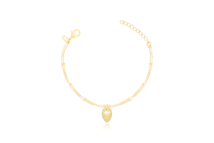 PULSEIRA BANHADA EM OURO, ELO PORTUGUÊS 3mm, ELO CORAÇÃO 4,20mm LARGURA, PINGENTE CORAÇÃO 11mm LARGURA COM MENINO