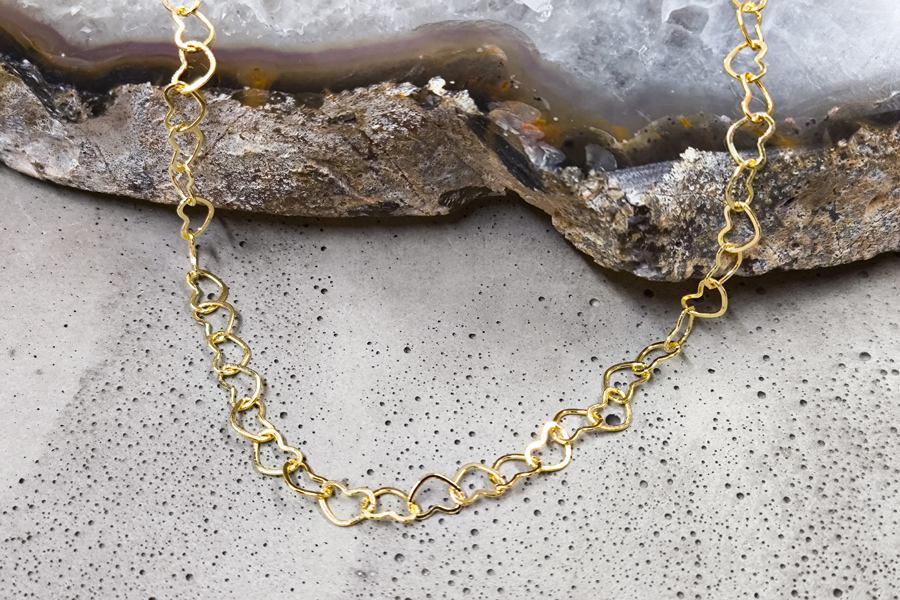 GARGANTILHA BANHADA EM OURO, ELO PORTUGUÊS 5mm DIÂMETRO, 40cm COMPRIMENTO E CORAÇÃO 27mm LARGURA, LISO OU ACETINADO