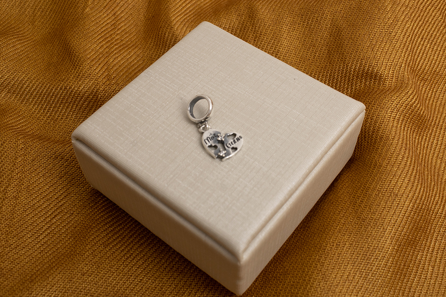 PINGENTE EM PRATA, MENINO CRAVEJADO COM CORAÇÃO LISO, 16mm ALTURA