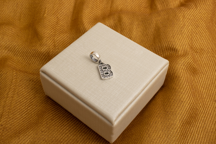 PINGENTE EM PRATA, LETRA ''S'' CRAVEJADA