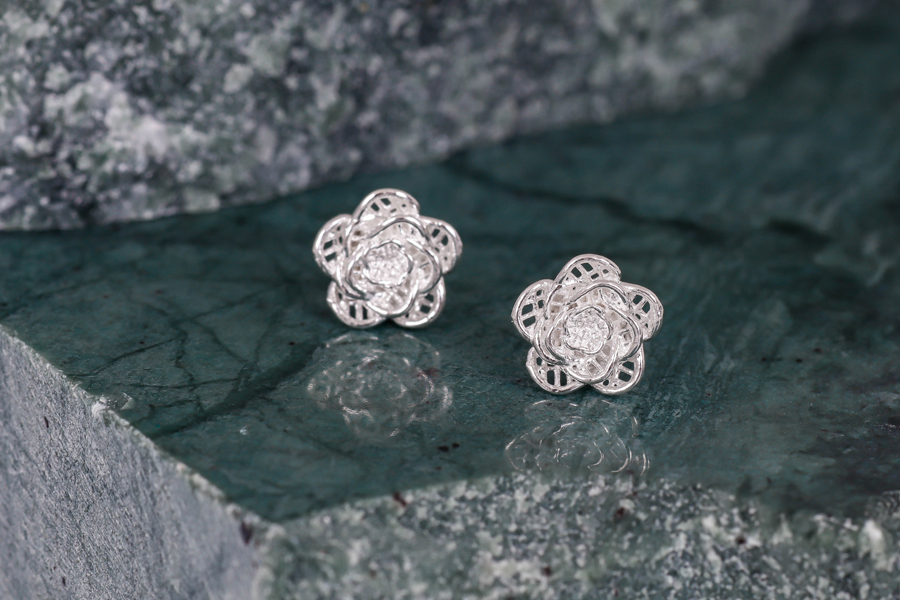 BRINCO BANHADO EM PRATA LEVE, FLOR 7,20mm LARGURA