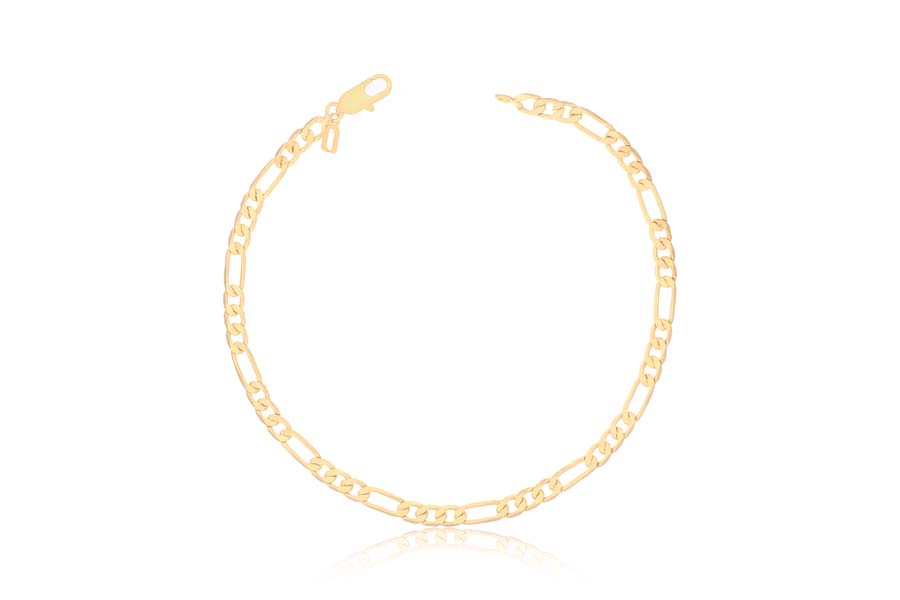 PULSEIRA BANHADA EM OURO, CORRENTE ELO PORTUGUÊS 5mm, 17cm COMPRIMENTO, EXTENSOR 5cm COMPRIMENTO E PESO 4,60g