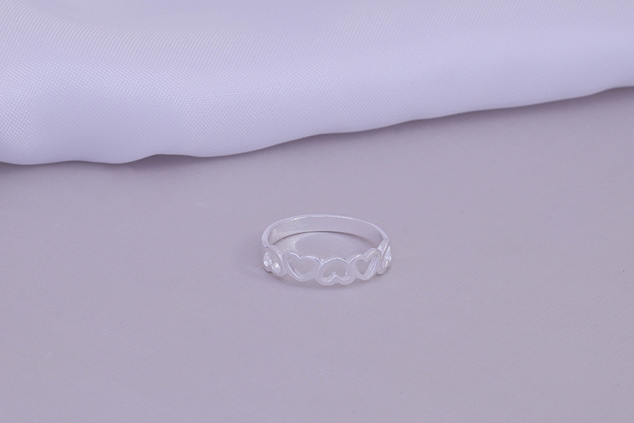 ANEL EM PRATA, ALIANÇA, 58 ZIRCÔNIAS, COM CORAÇÕES NAS BORDAS, 2mm LARGURA