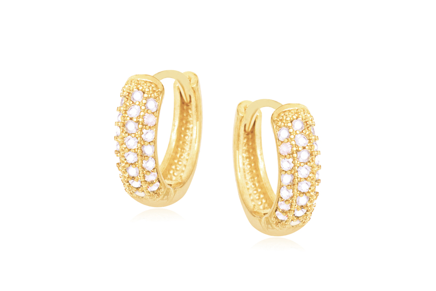 BRINCO BANHADO EM OURO, 21mm ALTURA COM 54 ZIRCÔNIAS