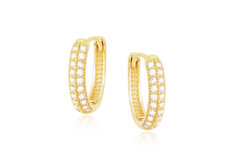 BRINCO BANHADO EM OURO, 15mm ALTURA, 8,40mm DE LARGURA COM UMA FILEIRA DE ZIRCÔNIA