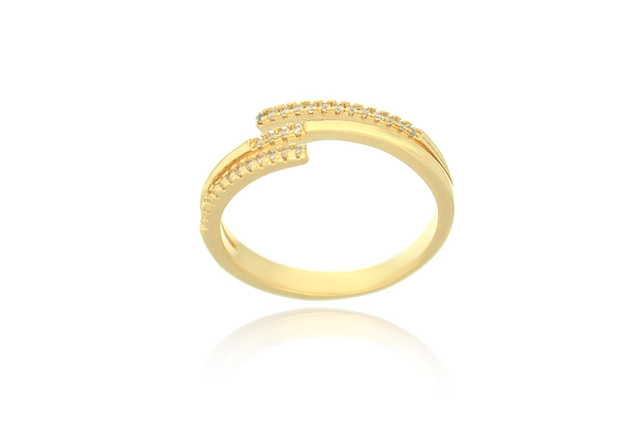 ANEL BANHADO EM OURO, SOLITÁRIO 5mm COM 22 ZIRCÔNIAS