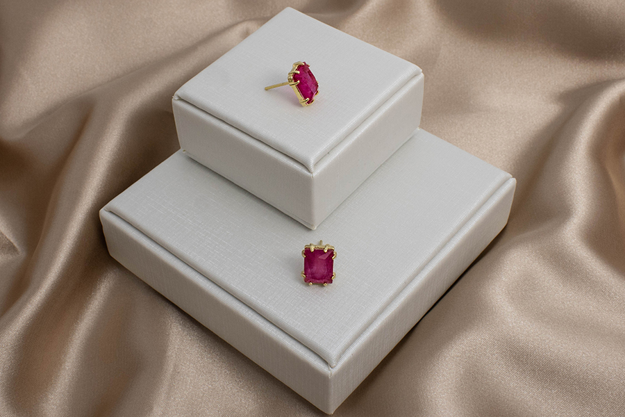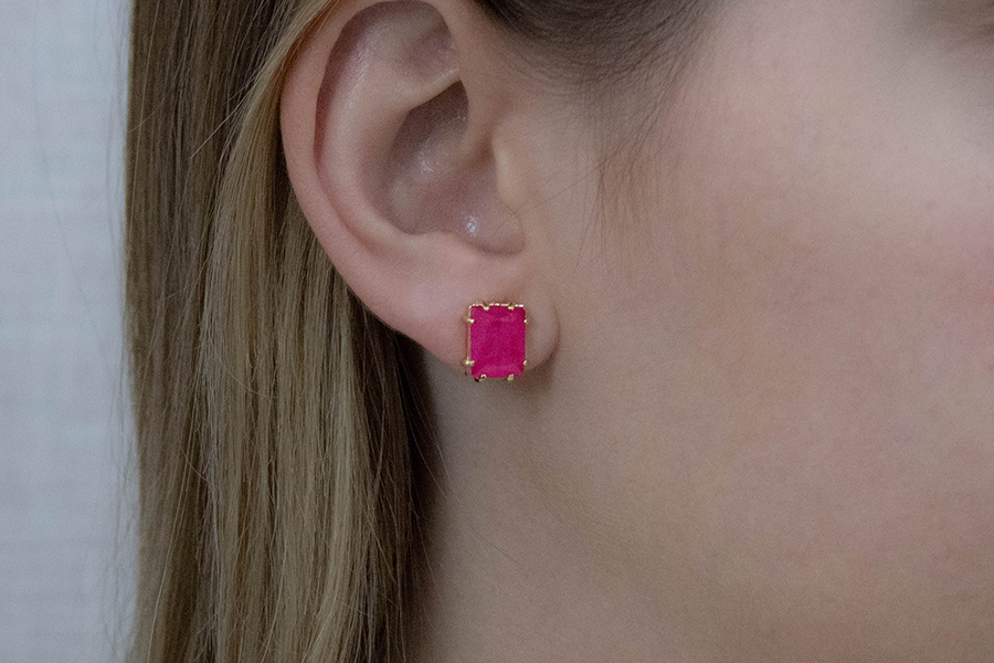 BRINCO BANHADO EM OURO, QUADRADO 6,50mm, COM ZIRCÔNIAS NAS LATERAIS