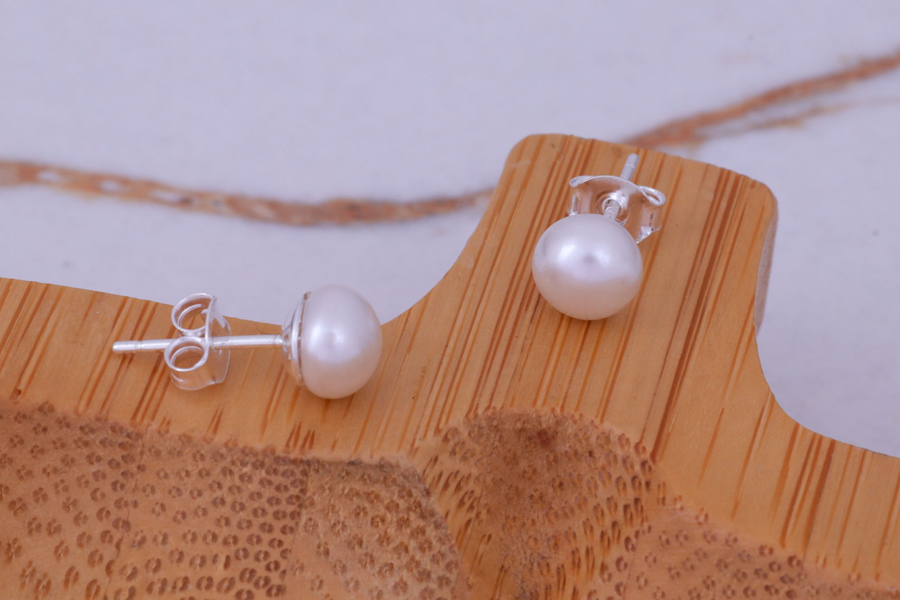 BRINCO EM PRATA, HASTE CRAVEJADA E PÉROLA 8,30mm DIÂMETRO