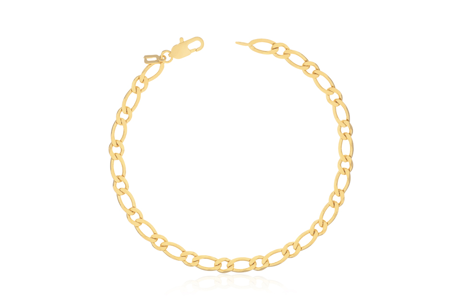 PULSEIRA BANHADA EM OURO, CORRENTE ELO PORTUGUÊS 5mm, 17cm COMPRIMENTO, EXTENSOR 5cm COMPRIMENTO E PESO 4,60g
