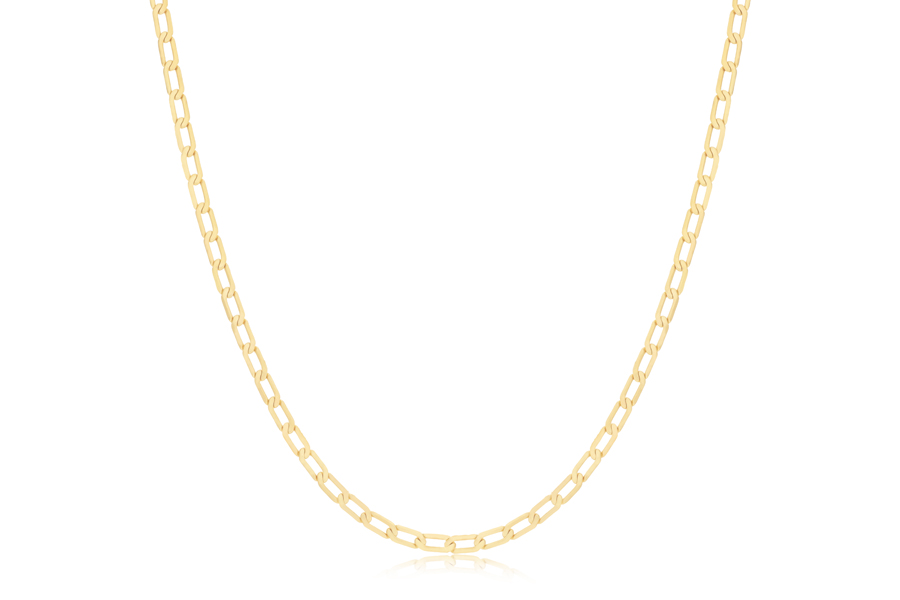 CORRENTE BANHADA EM OURO, ELO PORTUGUÊS 2,50mm, 45cm COMPRIMENTO, EXTENSOR 5cm COMPRIMENTO E PESO 3,80g
