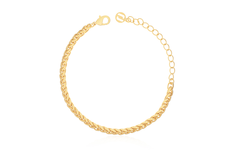 PULSEIRA BANHADA EM OURO, CORRENTE ELO PORTUGUÊS 5mm, 17cm COMPRIMENTO, EXTENSOR 5cm COMPRIMENTO E PESO 4,60g