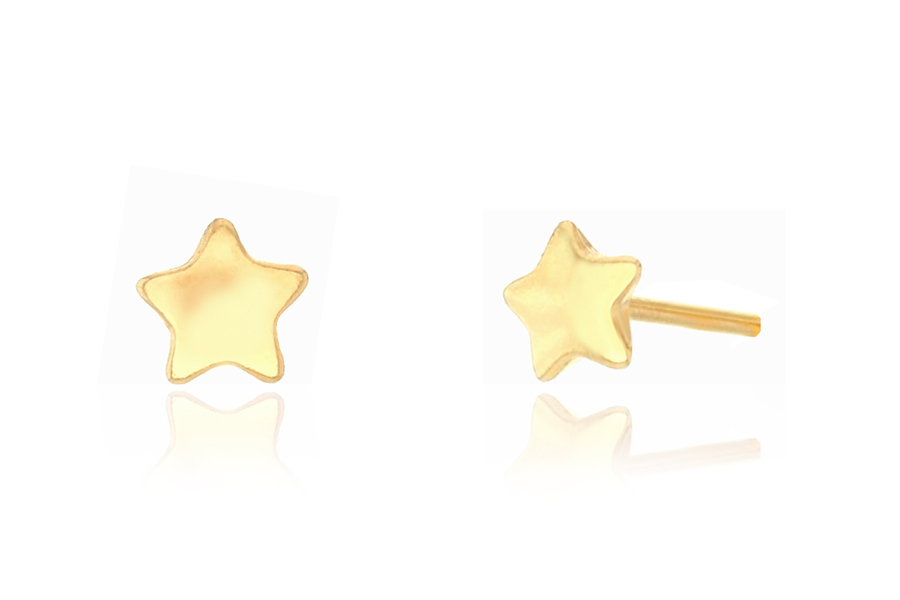 BRINCO BANHADO EM OURO, ESTRELA 4mm LARGURA, COM TARRAXA BABY