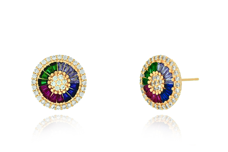 BRINCO BANHADO EM OURO, OVAL 10X8mm, COM 27 ZIRCÔNIAS BRANCAS OU COLORIDAS