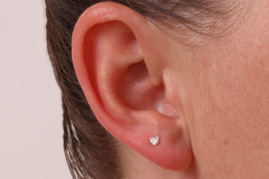 BRINCO BANHADO EM OURO, CORAÇÃO 3,50mm LARGURA COM TARRAXA BABY