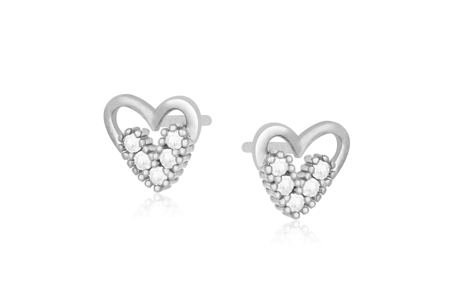 BRINCO EM PRATA, CORAÇÃO VAZADO MEIO CRAVEJADO 7mm LARGURA