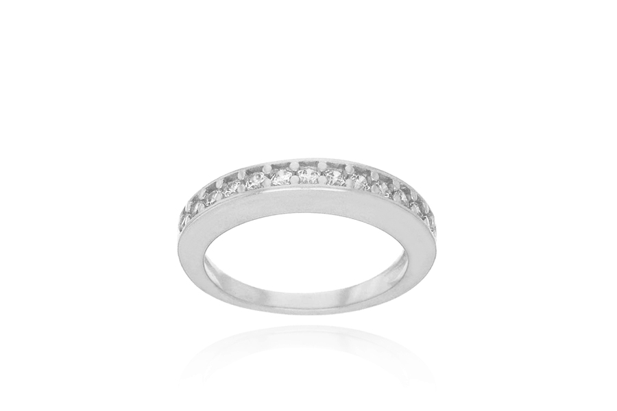 ANEL EM PRATA, MEIA ALIANÇA COM DUAS FILEIRAS DE ZIRCÔNIAS, 2,30mm LARGURA