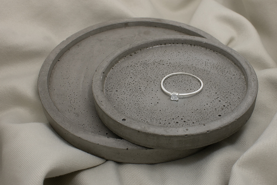 ANEL EM PRATA, SOLITÁRIO REDONDO 4mm, 6 GARRAS, INTERIOR EM FILIGRANA
