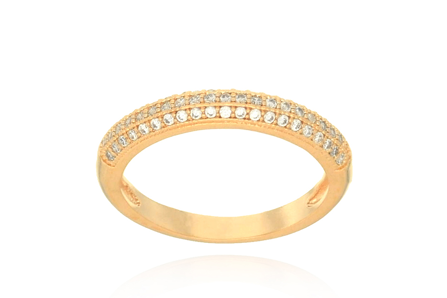 ANEL BANHADO EM OURO, APARADOR DUPLO COM 2 FILEIRAS DE ZIRCÔNIAS CADA