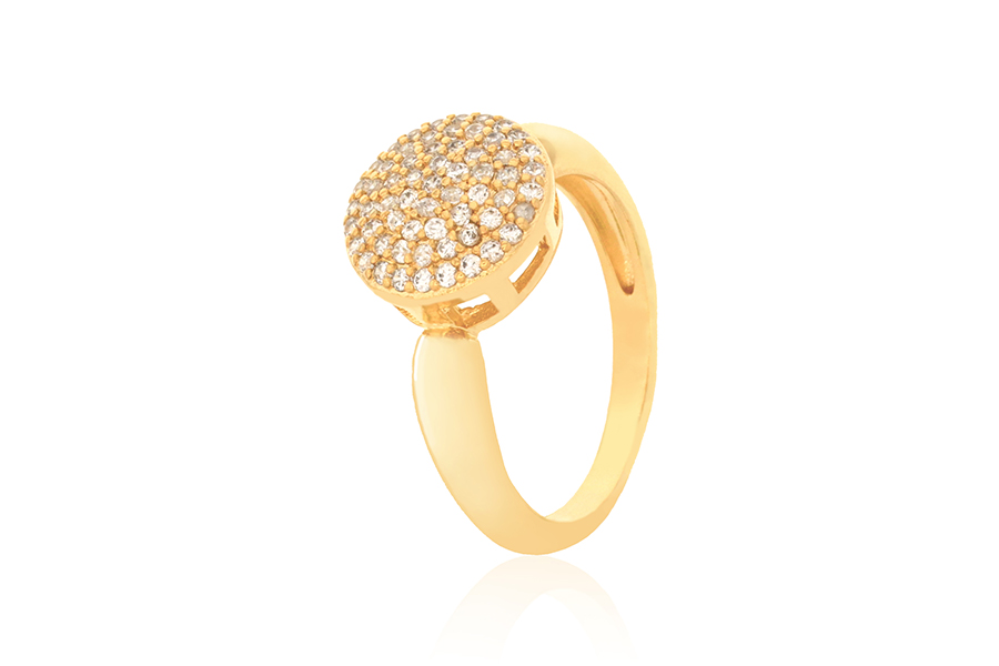 ANEL BANHADO EM OURO, SOLITÁRIO 5mm COM 22 ZIRCÔNIAS