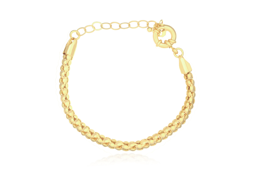 PULSEIRA BANHADA EM OURO, CORRENTE ELO PORTUGUÊS 5mm, 17cm COMPRIMENTO, EXTENSOR 5cm COMPRIMENTO E PESO 4,60g