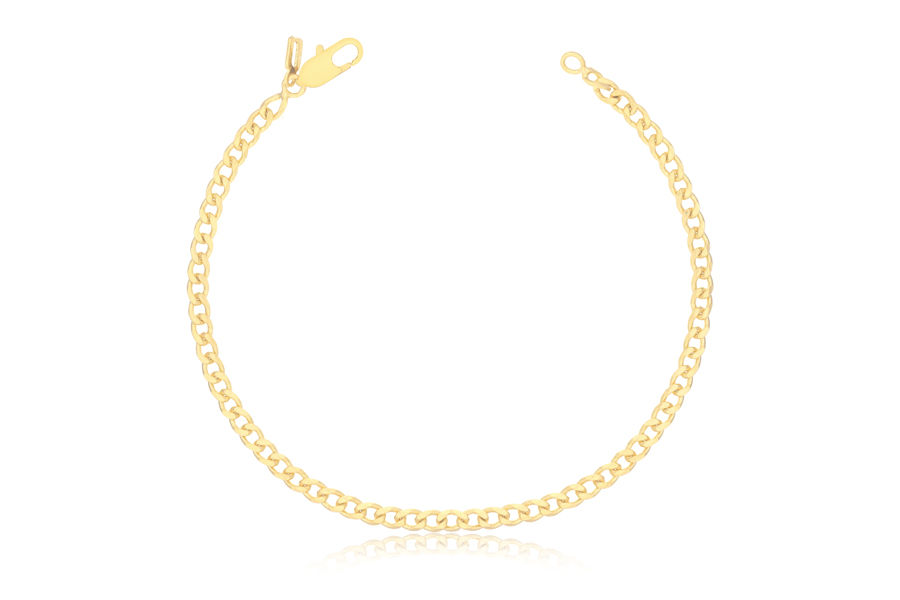 PULSEIRA BANHADA EM OURO, CORRENTE ELO PORTUGUÊS 5mm, 17cm COMPRIMENTO, EXTENSOR 5cm COMPRIMENTO E PESO 4,60g