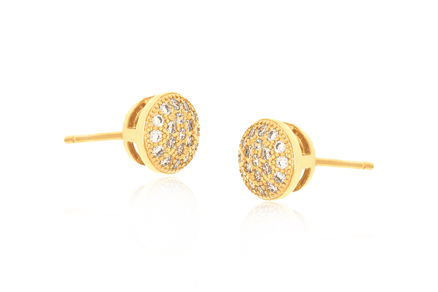 BRINCO BANHADO EM OURO, PONTO DE LUZ 5mm E CRAVAÇÃO INGLESA